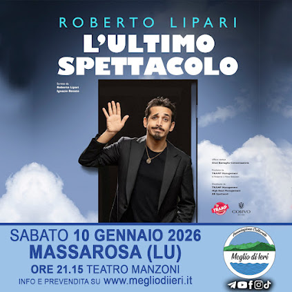 Direttamente dal noto programma Mediaset “Striscia La Notizia” al Cartellone EVENTI nazionale “Meglio di Ieri”, Roberto Lipari al Teatro Vittoria Manzoni di Massarosa (Lucca) con il suo ultimo spettacolo. E se fosse veramente così? Per un comico la prima volta sul palco non si scorda mai, ma l’ultima? Sarà la più divertente? La più surreale? La più personale? Nasce così un monologo in cui Roberto conduce il pubblico in un esilarante viaggio introspettivo dove per la prima volta parla della sua vita, dei paradossi della sua quotidianità, dei dubbi e dei sogni. Non rinuncerà però a gettare uno sguardo sul suo mondo, sulla società e sulle generazioni. Segnerà così, passo dopo passo, risata dopo risata, riflessione dopo riflessione la strada che lo porterà a decidere se questo spettacolo debba essere veramente l’ultimo.